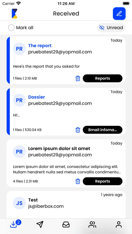 Bmail offers you the features of a standard email, but in a totally safe way. You can send and receive mails and information of any of your contacts.