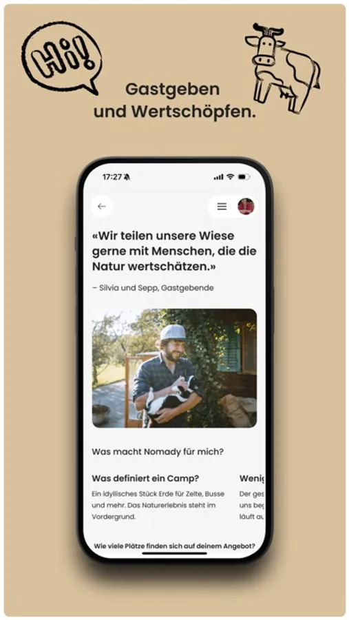 With the Nomady app, your individual camping spot is always at hand. You can choose from unique tent and parking spots as well as accommodations in the middle of nature. Now you can save your favorite spot as a favorite and book spontaneously and flexibly in the app while on the go.