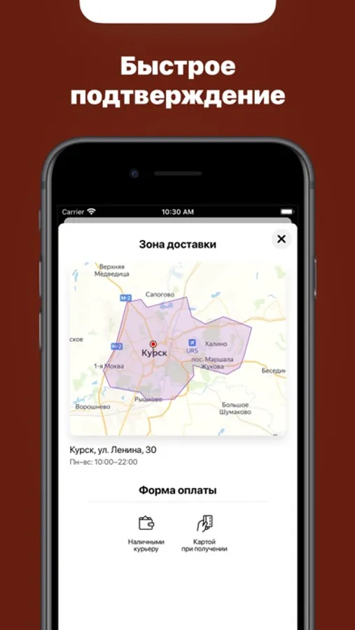 — Быстрый заказ с мгновенным подтверждением через приложение.