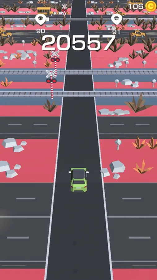 Drive your car on a narrow road and get to the finish line by dodging traffic, trains and turns. Move forward with just tapping on the screen and perfect your timing in this game. You can get coins in the levels and use that to unlock new cars that you can play with. There are plenty levels to keep you hooked. Prove your timing skills with this game!
