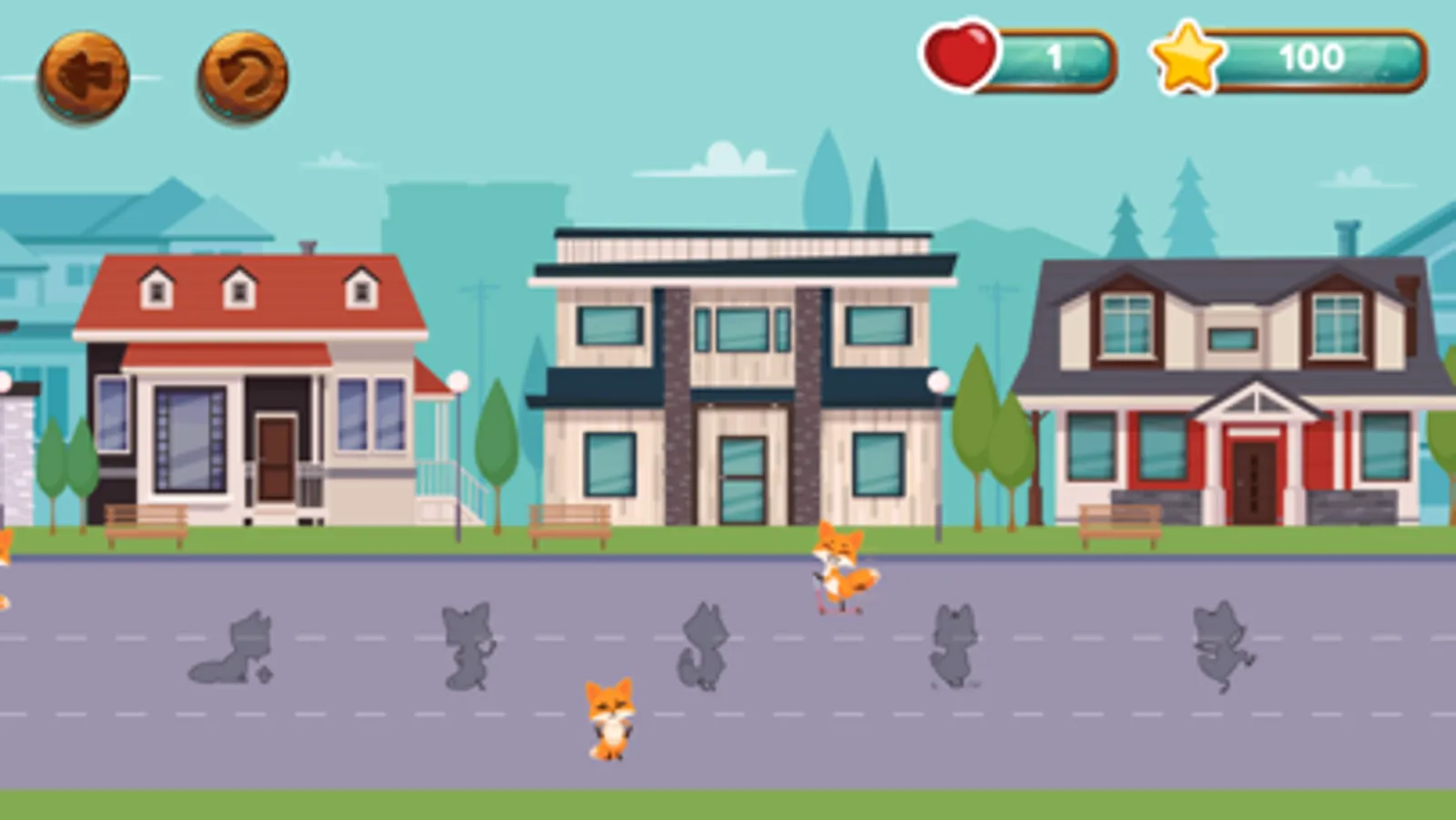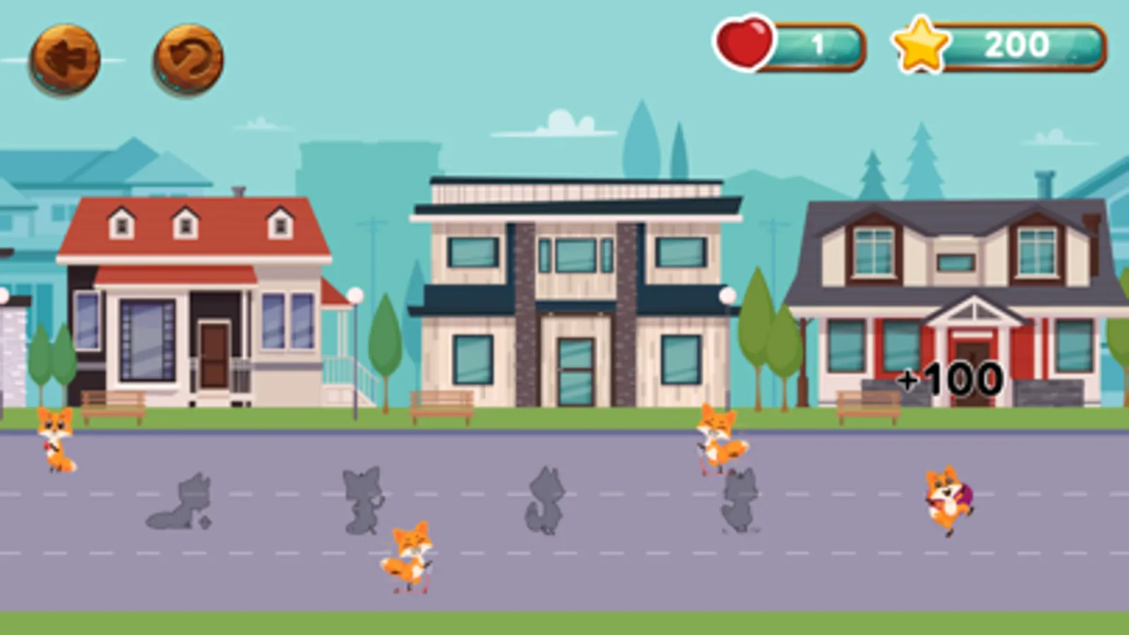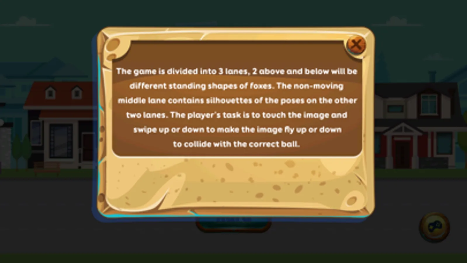 The game is divided into 3 lanes, 2 above and below will be different standing shapes of foxes, the upper lane moves continuously to the right, the lower lane moves continuously to the left. The non-moving mid lane contains the shadows of the poses on the other two lanes. The player's task is to touch the ball and swipe up or down to make the ball fly up or down to collide with the right shape.