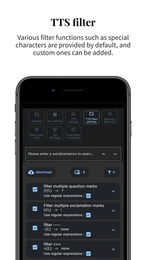 - TTS filter function (provides dozens of basic filters for general users to use easily)