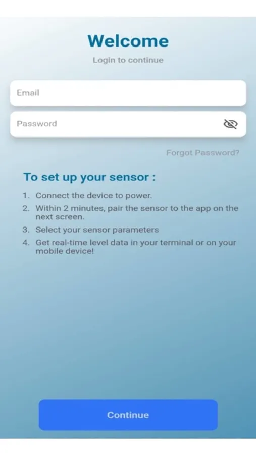 The app detects your RLI-80 sensors via Bluetooth, with steps to validate your sensors and keep your data secure.