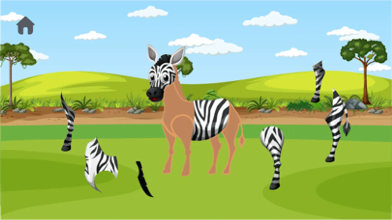 It’s a jigsaw puzzle game for kids. They have to drag the pieces of animals to their correct place and complete the full Image. That way kids can learn about animals. It's for entertainment only.