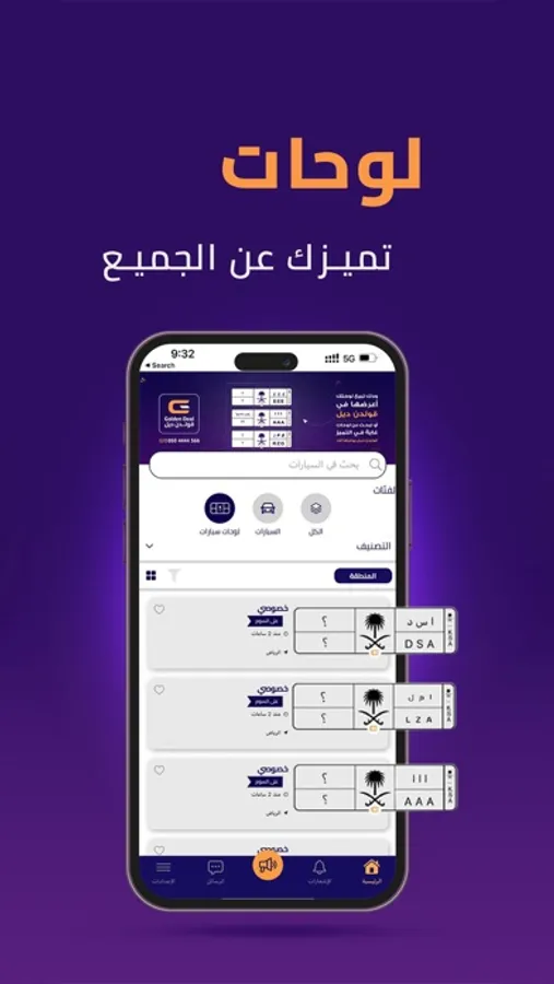 في تطبيق قولدن ديل تقدر تعرض سيارتك الفارهة للبيع بضغطة زر وتقدر تشتري السيارة الفارهة الي تحبها وتختار لوحتك المميزة
