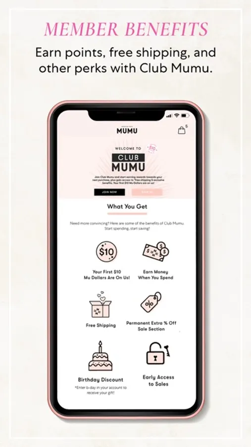 MEMBER PERKS - As a Club Mumu member, you’ll earn points every time you shop. Enjoy early access to sales, free standard shipping*, birthday discounts, and more. Use your rewards to get yourself something super special!