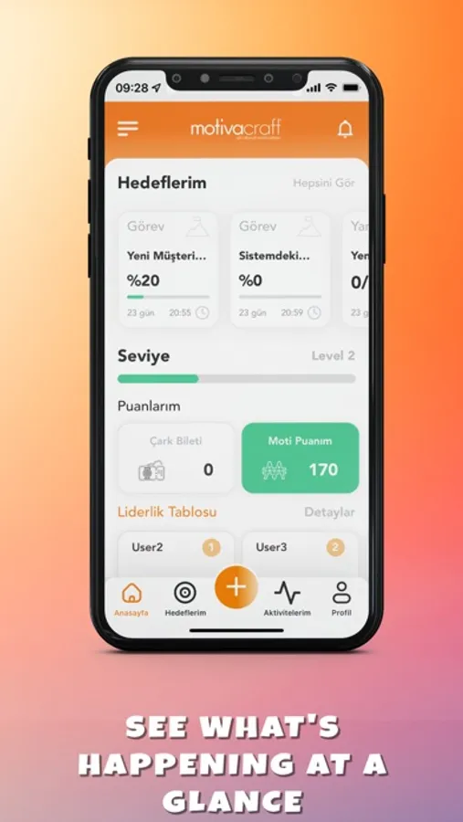 Using the app, you can quickly take a look at your own performance and compare it to the progress of others in your organization. The application allows you to easily monitor all the activity in your organization in real time. This way, you never miss out on things to do and new activities. You can follow the tasks you need to complete and the competitions you participate in in real time. You will never miss the activities and what you need to do.