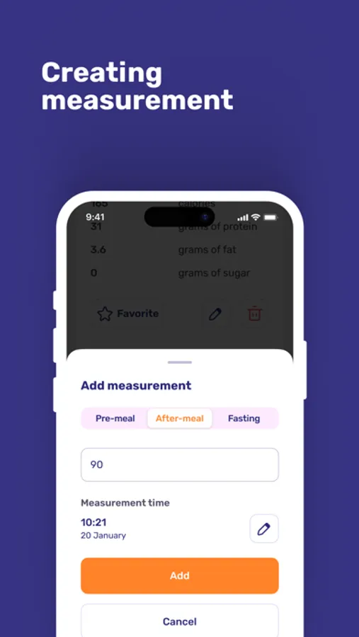 The application warns about food that causes high sugar levels and provides a recommendation for proper nutrition so that the patient can change the composition of the diet at the very next meal.
