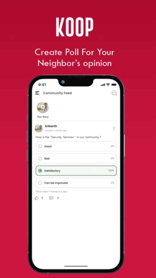 Koop is a real-time social media platform that fosters communication with neighbours in your gated communities. The primary objective of the Koop Platform is for the gated community to enhance the communication, collaboration & engagement between the residents of a gated community. With Koop, we ask people to interact, get comfortable and then meet. In the case of a social media platform like Facebook, people are often scared to share their personal details when they connect with others. There might not be an authentic identity. Whereas in Koop, since it is a private social media platform for your gated community, there is no such fear of a wrong or a fake identity. Here, people are already part of the community and Koop is a simplified platform to connect with one another.