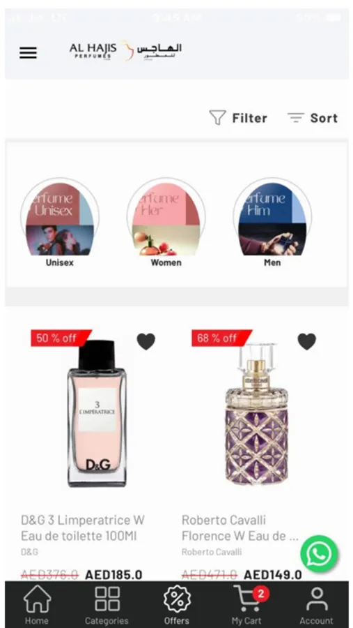 Get your favourite perfumes delivered home from the wide collection of authentic perfumes from Al Hajis Group. Choose from the vast categories of items made using decades old legacy of perfume manufacturing and retailing. Add your favourite products to carts in simple steps, checkout in a couple of taps and you're done. Quality and best prices assured.