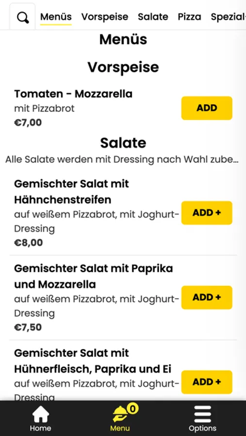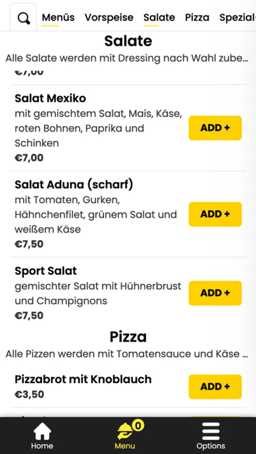 - Durchsuchen Sie die Speisekarte des Restaurants und sehen Sie sich alle anpassbaren Optionen im Voraus an