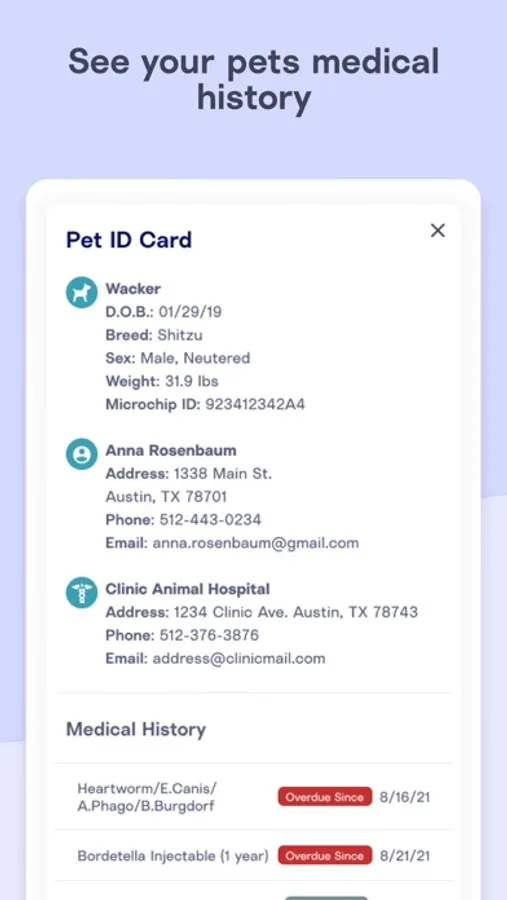 *Access and share pet vaccine information with other service providers, such as your groomer or boarder