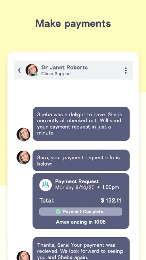 *Complete payments for appointments or pre-pay for upcoming services
