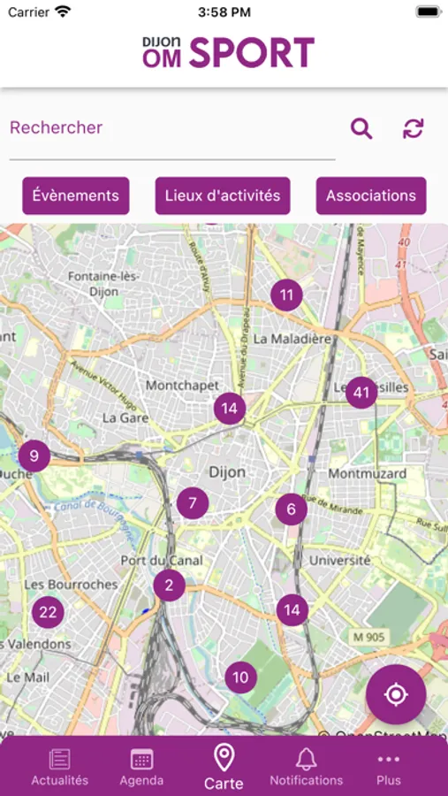 Vous recherchez un sport à pratiquer, une installation en libre accès, des renseignements sur les aides existantes, un événement sportif et le tout autour de chez vous, cette application est faite pour vous. Vous y trouverez tous les associations, les événements, les installations et l’actualité du sport dijonnais.