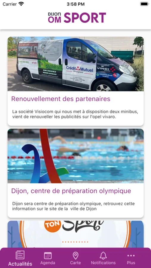 L’application « OM SPORT DIJON » est une application sur le sport dijonnais dans sa globalité.