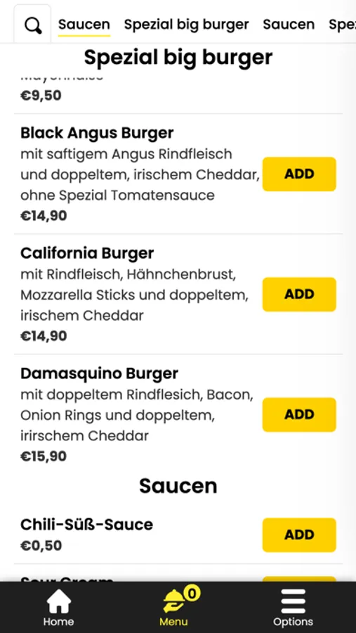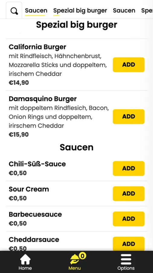 - Durchsuchen Sie die Speisekarte des Restaurants und sehen Sie sich alle anpassbaren Optionen im Voraus an