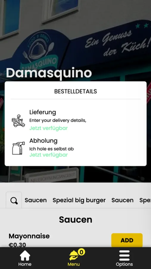 Mit der Damasquino Mobile App können leckeres Gericht bequem von zu Hause aus genießen. Stöbern Sie in unserer Speisekarte, wählen Sie die Gerichte aus, die Ihnen schmecken, und geben Sie Ihre Bestellung in Sekundenschnelle auf.