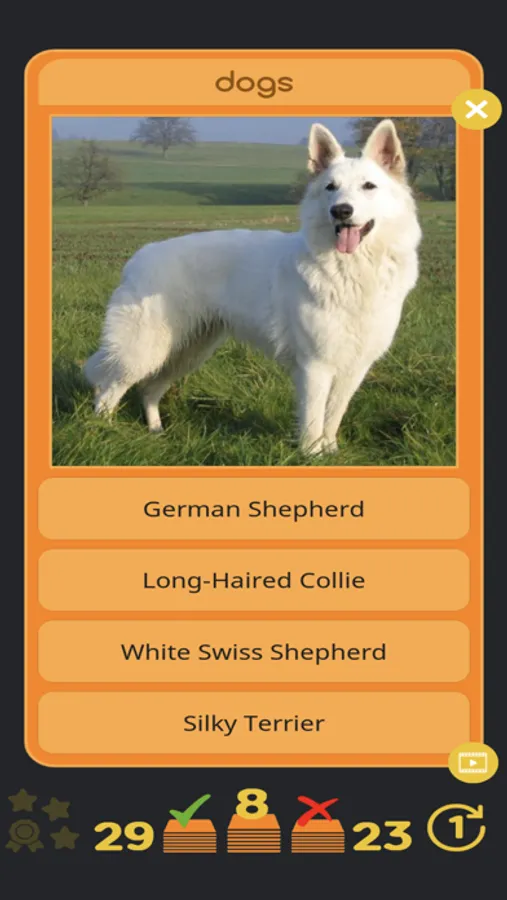 Quiz game about dogs, flags, constellations and more. Solve the tests without a time limit and in several rounds. Designed to learn and improve. Increase the score until you become an expert in each subject.
