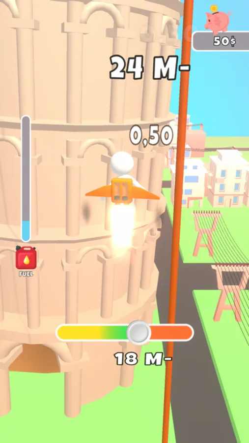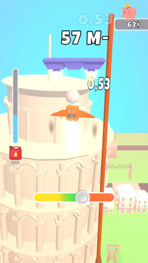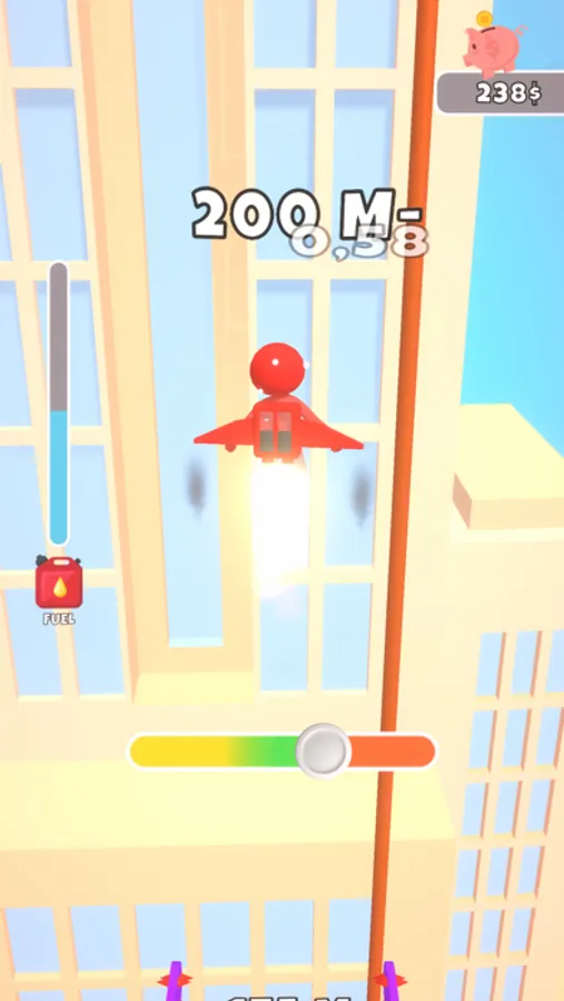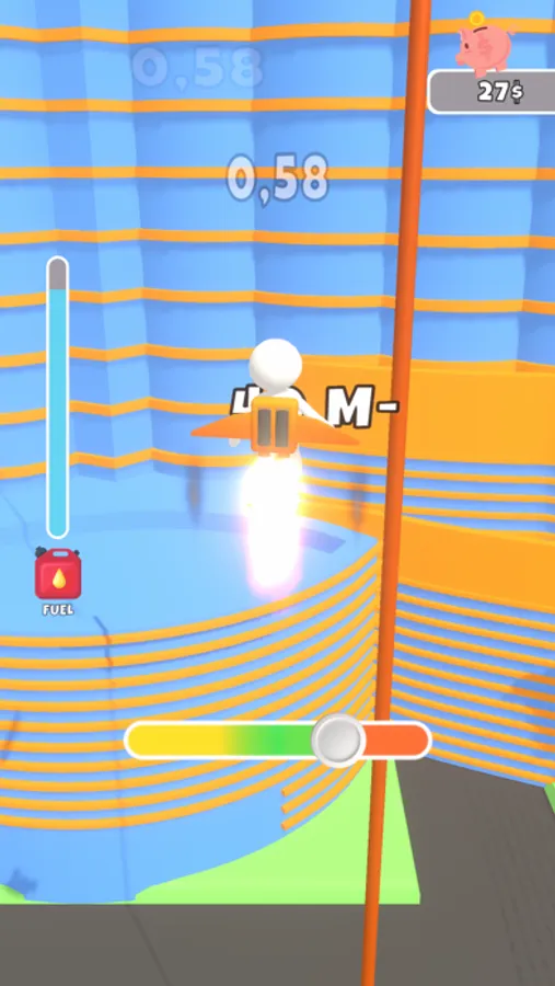 Use slider to control power capacity of the jetpack and fly higher while keeping the heat under control!