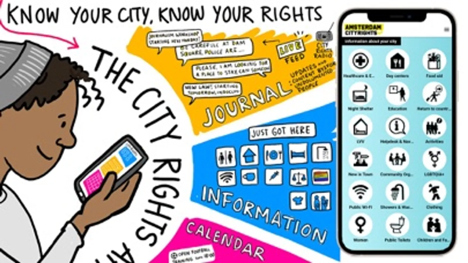 Information is key. The Amsterdam City Rights app provides information for undocumented people and can help you find your way to updates, news, people and organizations. In a 'know your rights' and 'know your city' part, information is shared on basic rights and where to go in Amsterdam. In the journal, content and updates are shared. In the calendar you can find activities ongoing in the city.