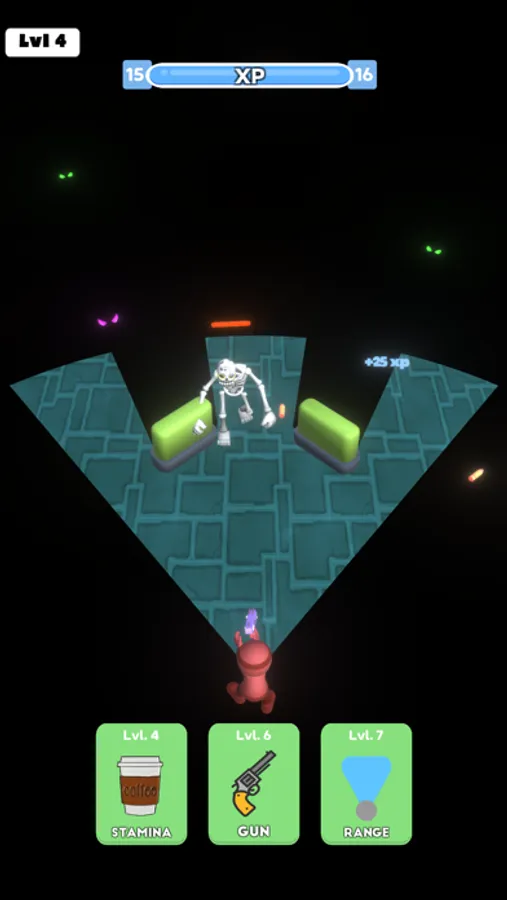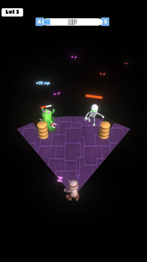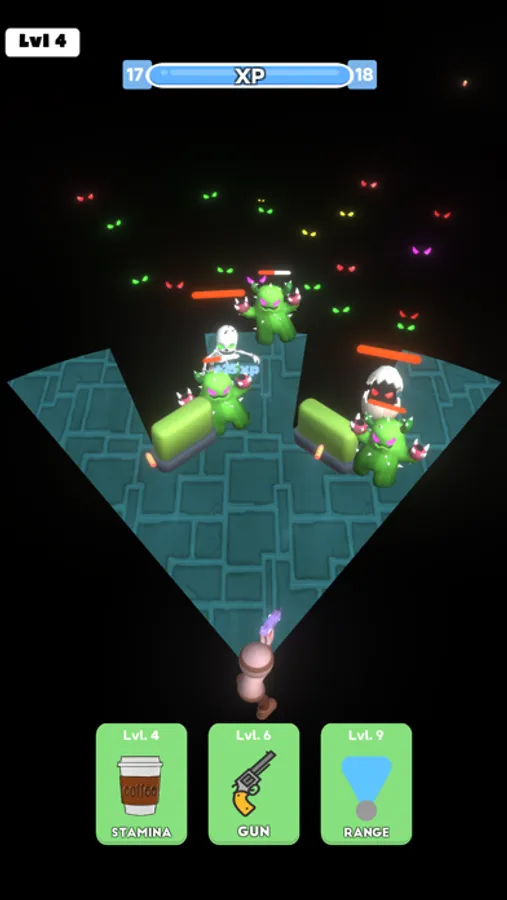 Stay awake and keep shooting monsters. If you sleep, you die. Upgrade to stay awake.