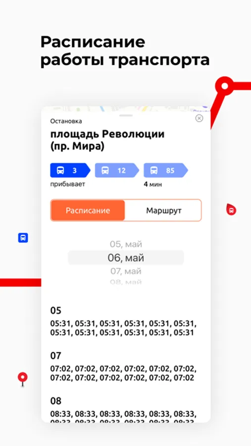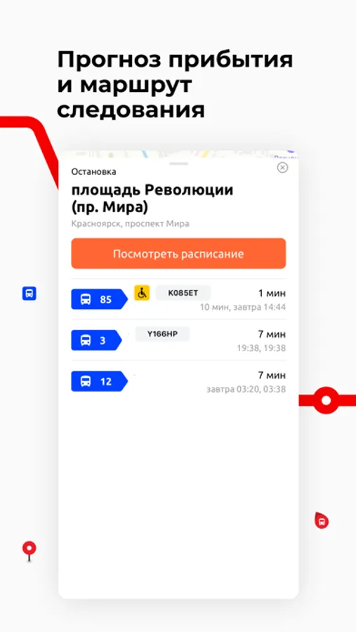 - узнать расписание и прогноз прибытия на нужную остановку;