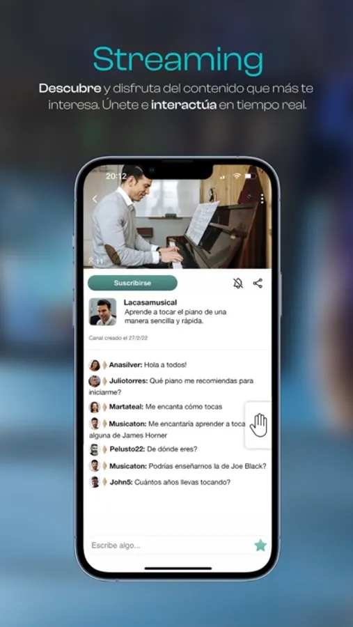 1. Explora los canales de vídeo y disfruta de los directos de tus creadores de contenido favoritos. Interactúa en el chat del canal, conecta con usuarios con tus mismos intereses y síguelos para estar al tanto de sus publicaciones. Levanta la mano para participar y comparte tu experiencia con la audiencia.