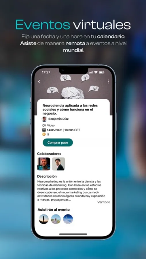 4. Asiste a eventos, disfruta y aprende en charlas, masterclasses, exposiciones y mucho más, de los mejores ponentes del momento. Chatea con el resto de los asistentes y comparte opiniones con la comunidad.