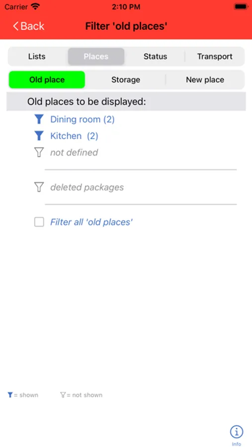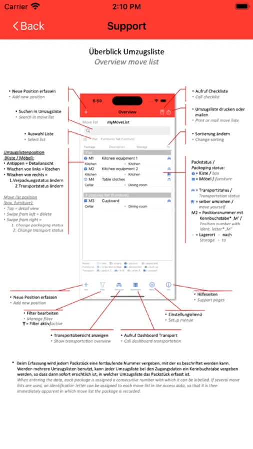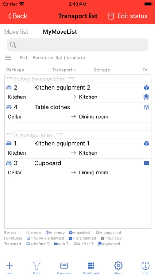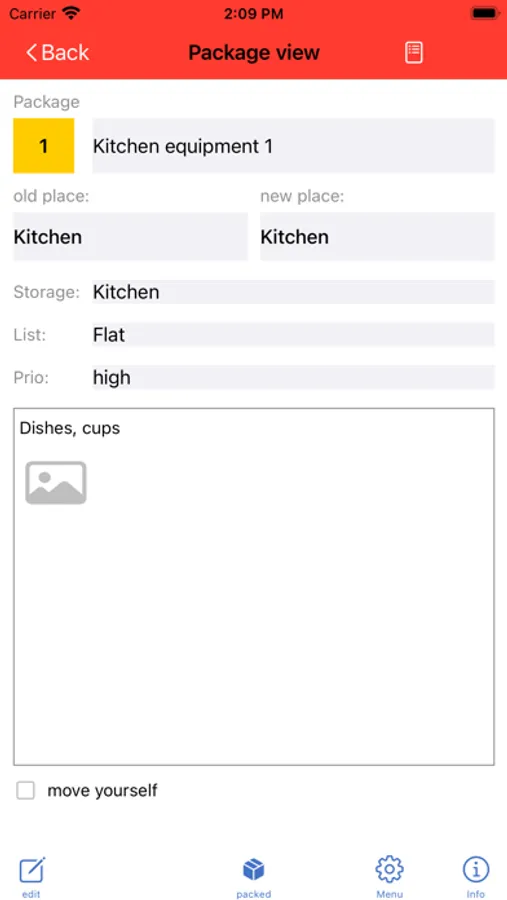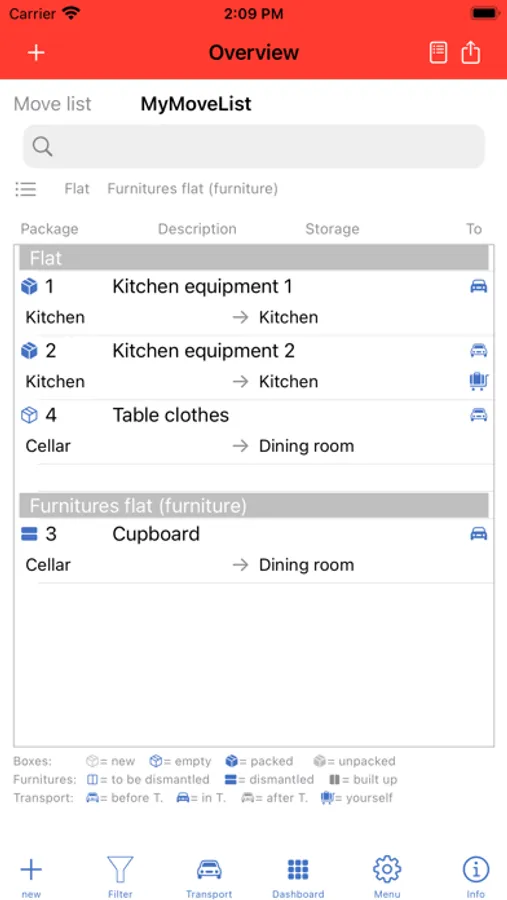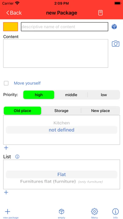 - For easier retrieval and control of the move, you can specify the location of a package, where it was in the old flat, where you are storing it until the move and where you want it to be in the new flat. Missing locations are simply entered during the entry of the package.