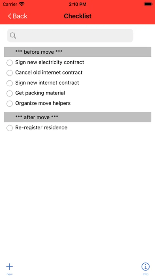 - You're moving in with your partner in a new flat and you're packing in different places? Then you can create a separate moving list for each place, for example.