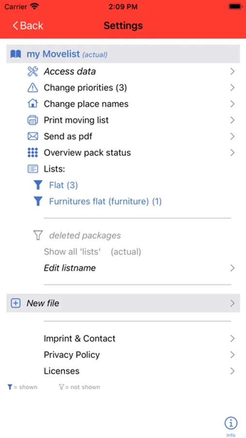 - For a better overview, you can also create lists - e.g. one for everything you pack in the flat and another for the cellar. You simply create a new list while entering the packages.
