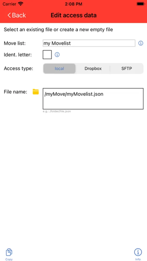 - If you save your move list to iCloud, your Dropbox or an SFTP server, you can share it with friends or family so they can edit it too.