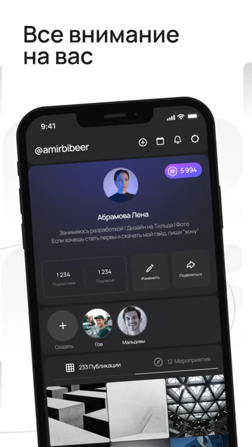 * Будьте в центре событий. Находите, создавайте и продвигайте ивенты. Используйте календарь, чтобы ничего не пропустить.