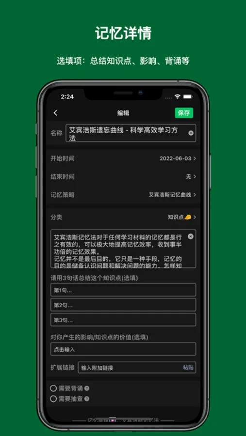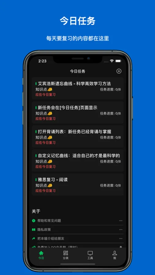 Have you ever felt frustrated because you forgot what you learned? Have you ever heard of the forgetting curve but couldn't find a good app to help you with it? We have had the same experience. That's why I developed an app: Memory Assistant. This app is different from other memory apps on the market. It's completely free, supports iCloud, sends notifications to remind you to review, and all data is under your control. Although it may seem complicated due to its many features, please believe me: once you use it for 3 days, you will fall in love with this app, as it can greatly improve your learning efficiency.