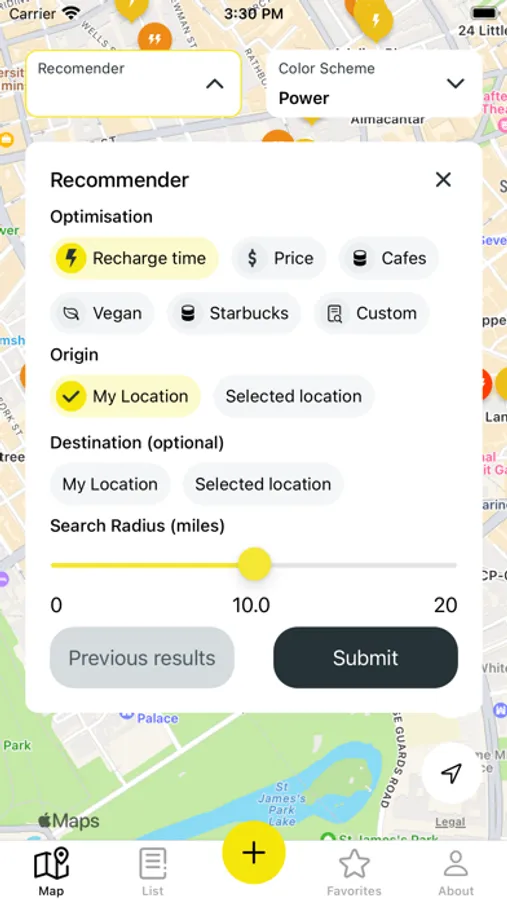 This application allows electric vehicle drivers to quickly rank and compare electric vehicle charge points.