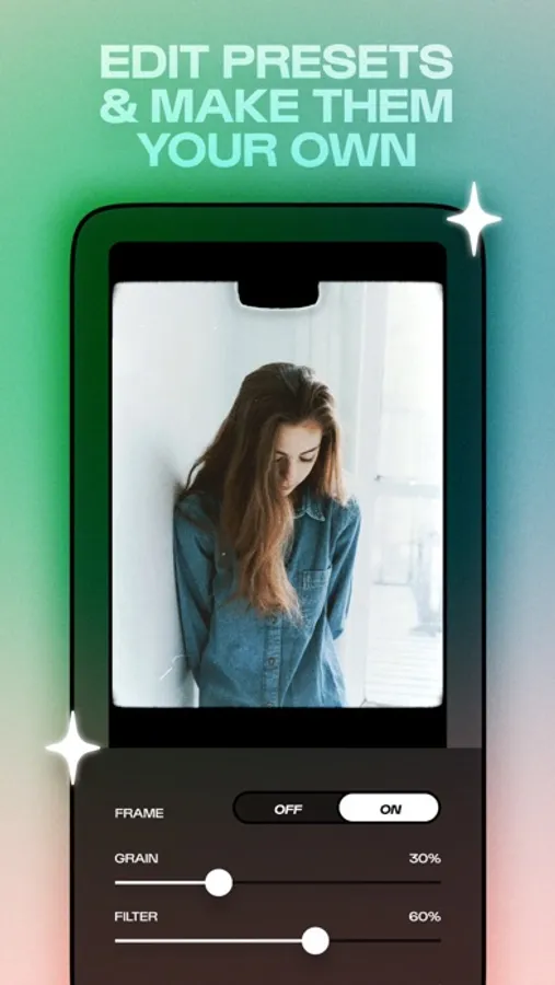 Tell your story by creating film-inspired aesthetics with our one tap Presets, authentic film overlays and wide range of creative tools.