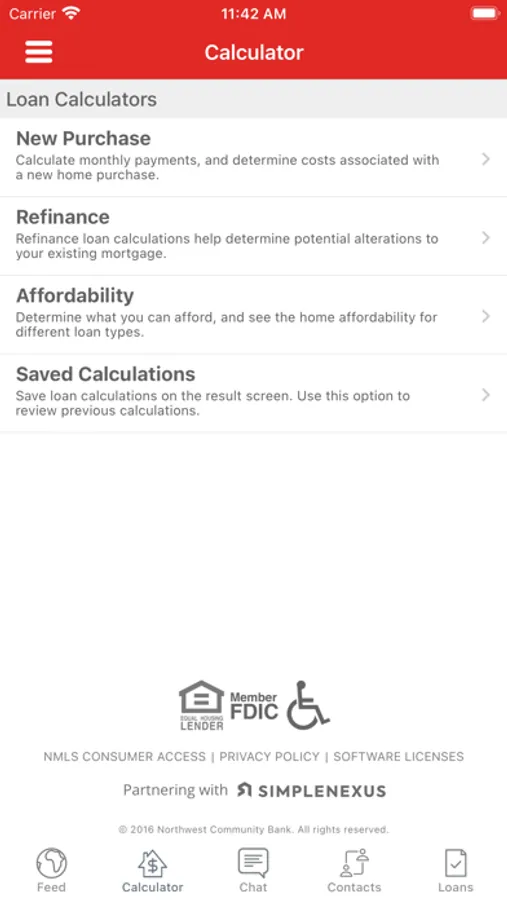 • Easily access contact information for your Northwest Community Bank Loan Officer and real estate agent and share this information with your family and friends.