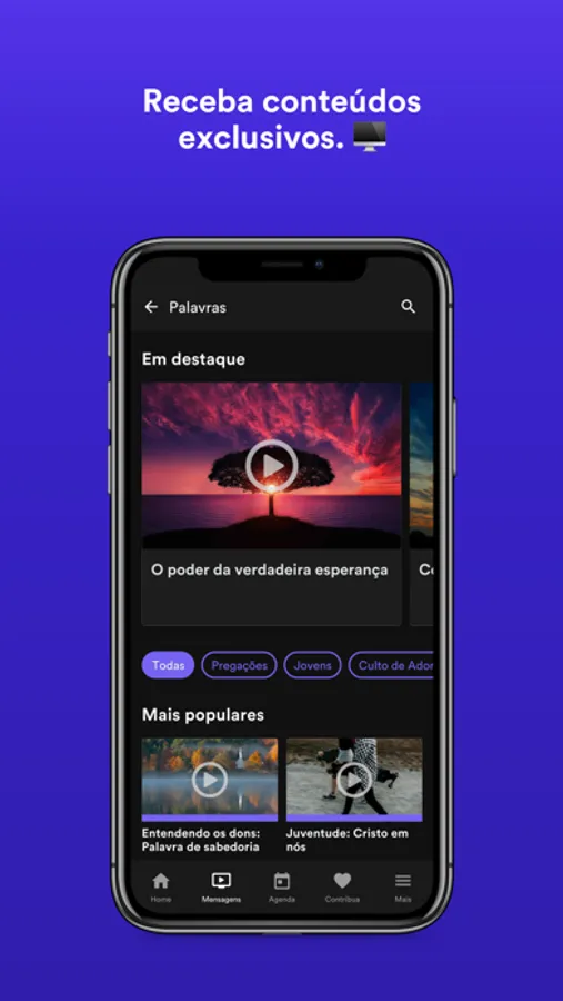 - Siga a agenda e fique por dentro de tudo que acontece na igreja, inscreva-se em eventos e tenha seus ingressos sempre com você.