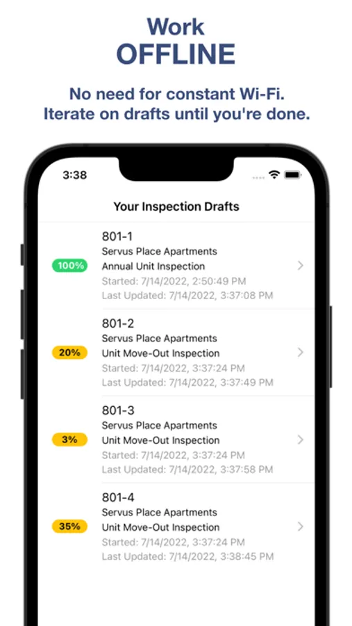 - Work in offline mode during your inspections, and upload your work when you have a better connection
