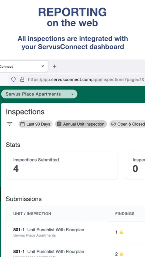 ServusInspections requires an account on the ServusConnect Platform. Contact our sales team today if your property management company is interested in access.