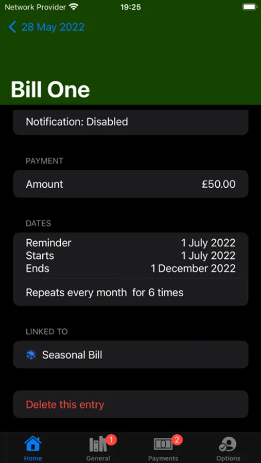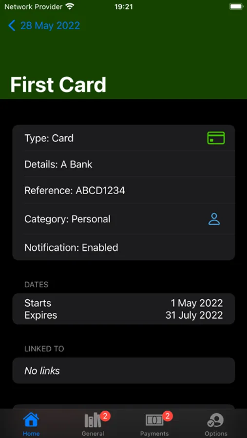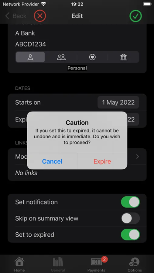 Keep tabs on the number of active and expired entries for each (General or Payment). Normally the icon shows the number of active entries, and when select it changes to show the number of expired undeleted entries instead.