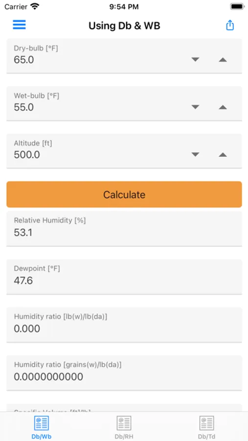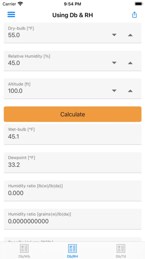 PsychromeTree is an app for HVAC Designers and Engineers to assist in calculations related to the properties of humid air. Calculate the properties of air using Dry-bulb temperature and Relative Humidity, Dry-bulb and Wet-bulb temperature, Dry-bulb and Dewpoint temperature. You can also calculate the result of combining two streams of air given their volumetric flow. Works in both Metric (SI) and Imperial (IP) units.