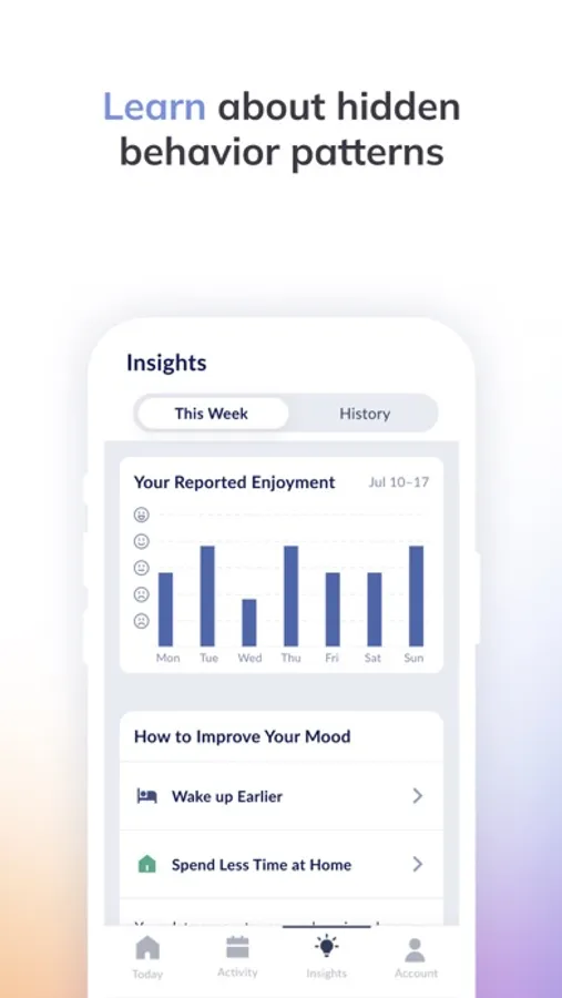 - Gain personal insights into your behavior with tailored recommendations on how to improve your mood.