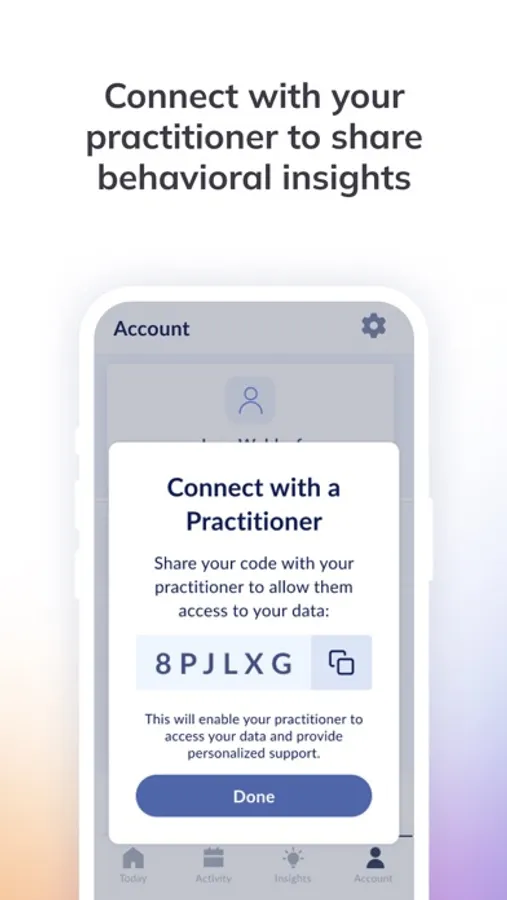 Unlock additional features by connecting your Vira account with your participating therapist or coach. Connecting Vira with your therapist allows them to remotely monitor your Vira data, see your reported mood, and schedule supportive nudges and questionnaires to aid with your personal treatment plan between visits. You may also choose to disconnect Vira from your therapist at any time in-app.
