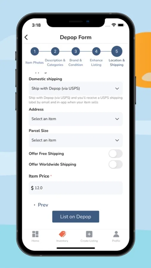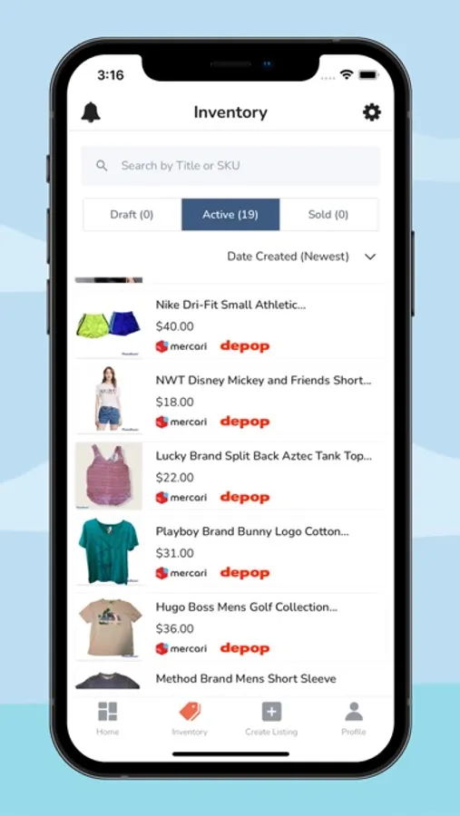 - Create listings within the app, then add them to your in-app inventory.