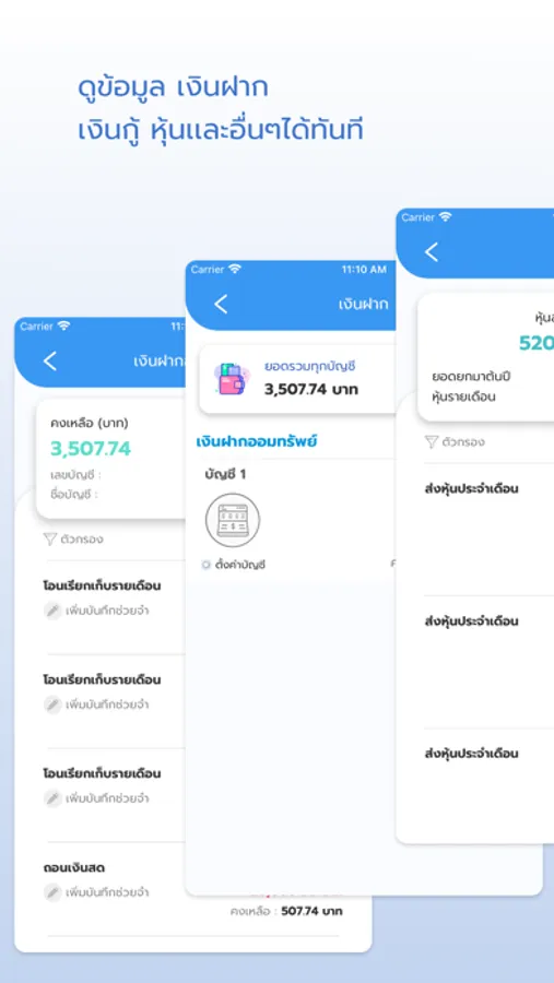 - ดูยอดเงิน รายการเคลื่อนไหวบัญชีเงินฝาก