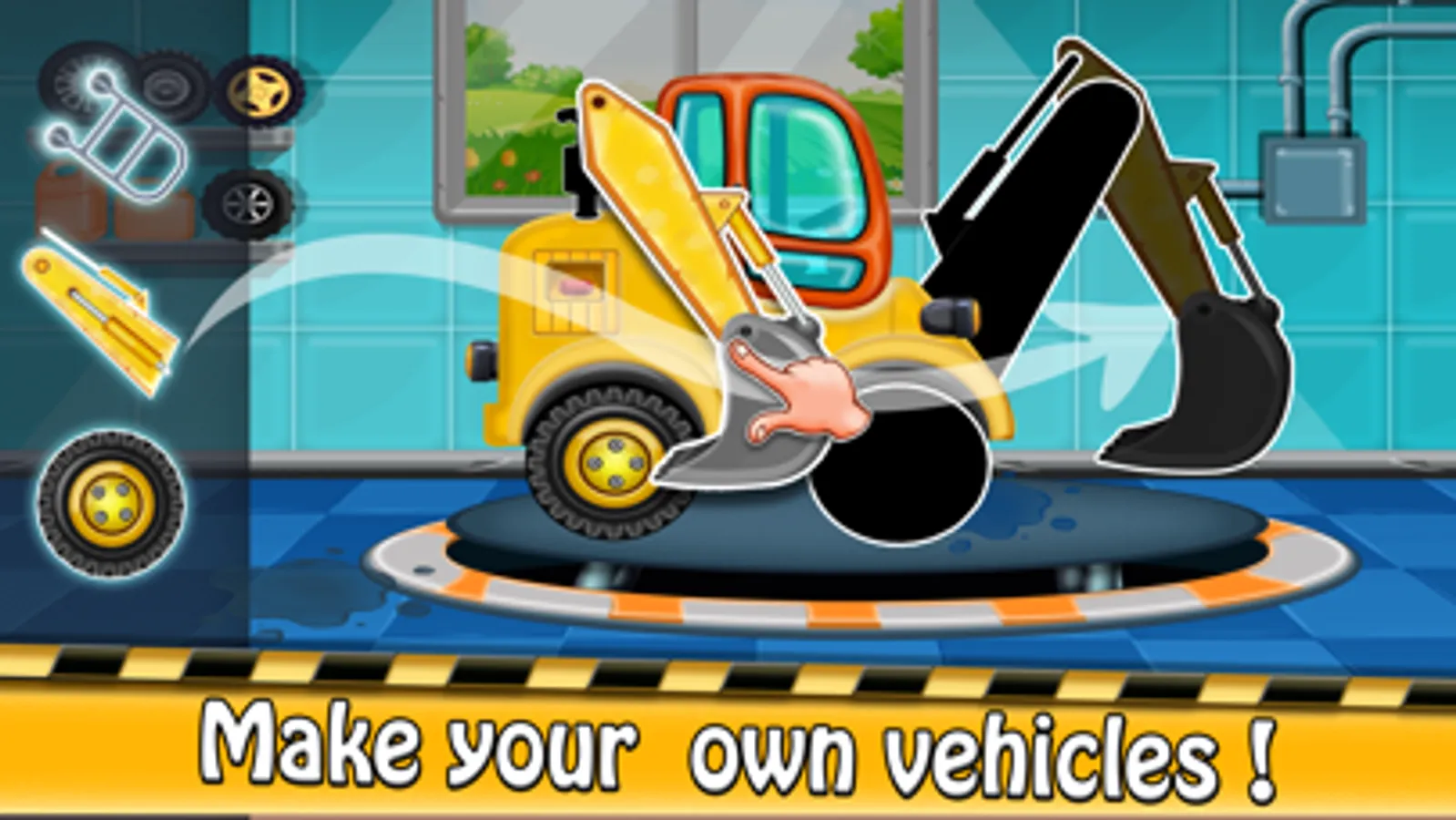 Wash up the construction trucks in the mechanic garage. Load your equipment and go straight to the construction site.