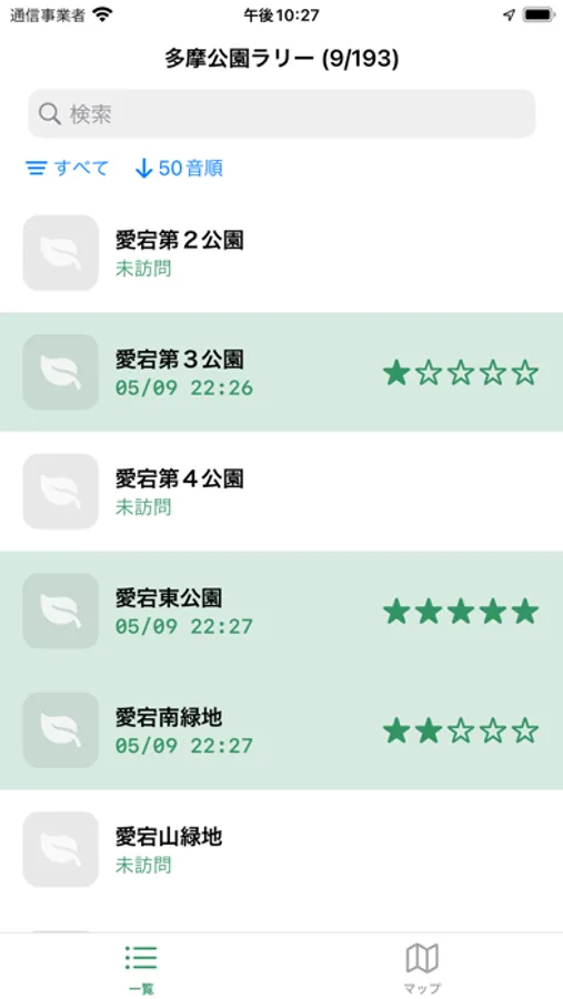多摩市の公園・緑地をスタンプラリー形式で巡ることができるアプリです。