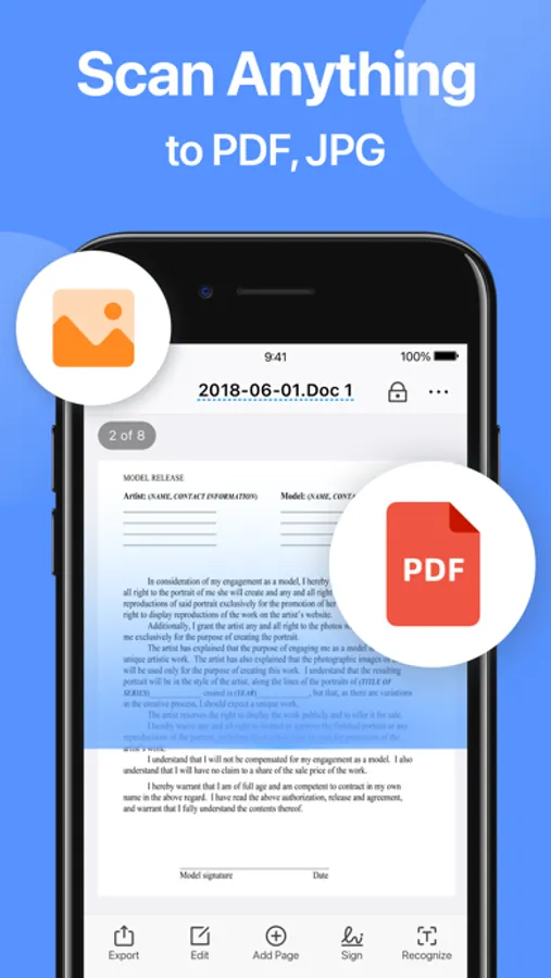 • Scan anything you need: ID cards, passports, business documents, invoices, etc.