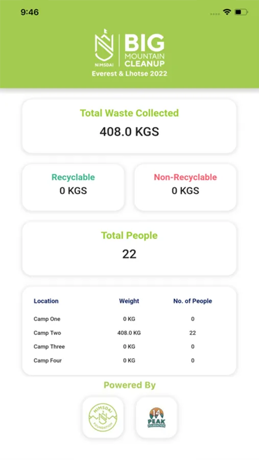 Big mountain clean-up is a free and simple to use mobile app. Without logging in, this app allows you to view the overall report. You can see: